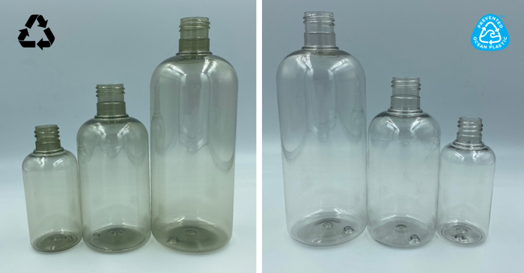 LUSH has been using recycled PET- left- for more than a decade. Their switch to Prevented Ocean Plastic- right- is a clear quality upgrade.